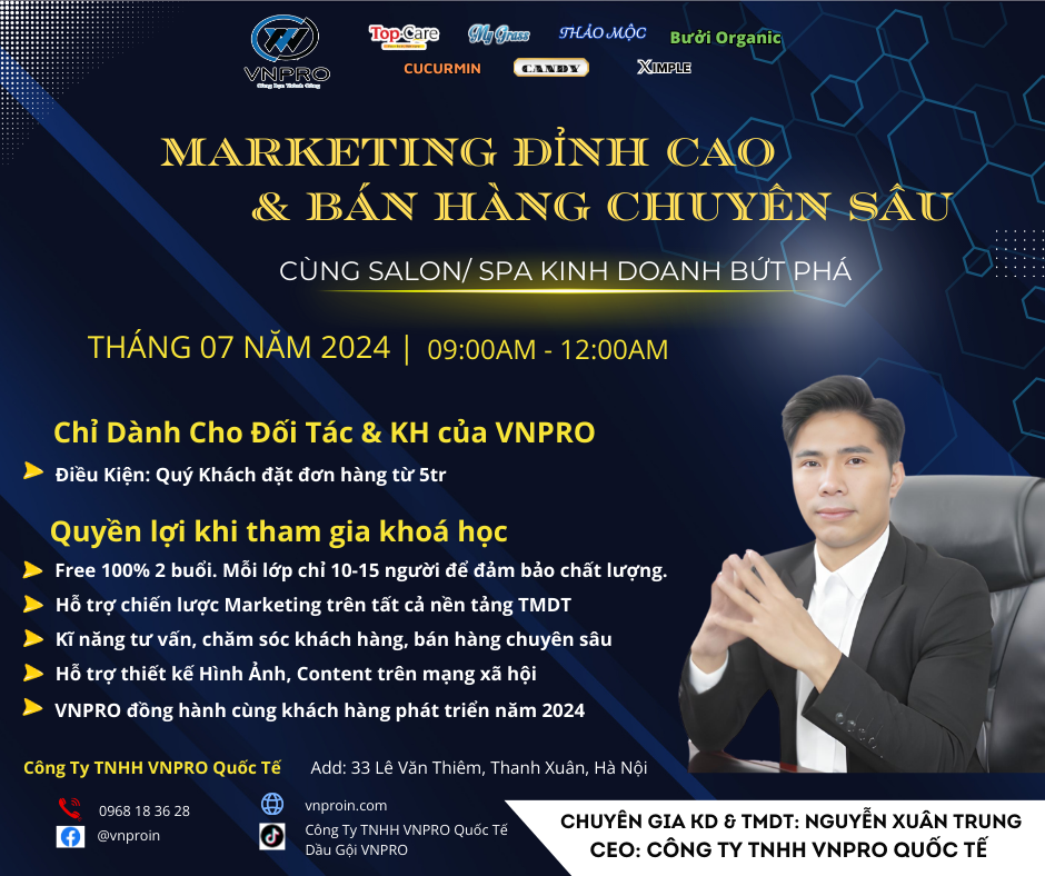 Vừa qua, Công Ty TNHH VNPRO Quốc Tế đã tổ chức một buổi hội thảo đầy cảm hứng với chủ đề “Marketing Đỉnh Cao & Bán Hàng Chuyên Sâu”, do chính CEO Nguyễn Xuân Trung trực tiếp hướng dẫn và chia sẻ. Buổi sự kiện này không chỉ đơn thuần là một buổi giao lưu mà còn là cơ hội để các chủ salon/spa tiếp cận những chiến lược marketing tiên tiến và kỹ thuật bán hàng hiệu quả từ một chuyên gia hàng đầu trong ngành. Dưới đây là những điểm nổi bật và giá trị mà các khách hàng của VNPRO đã nhận được từ sự kiện này: