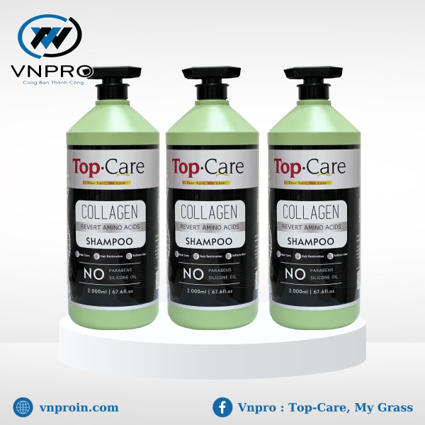 - Dầu gội Top-Care: Tinh chất tẩy rửa dịu nhẹ an toàn cho mọi loại tóc, phục hồi hư tổn chuyên sâu, cùng với độ mềm mại tự nhiên. Công thức độc quyền bổ sung Collagen siêu nhỏ mang lại cho mái tóc vẻ mềm mượt tự nhiên, tạo độ sáng bóng cho tóc, mà không làm yếu tóc và bảo vệ sự tự nhiên. Bảo vệ và nuôi dưỡng, giữ màu cho mái tóc.
