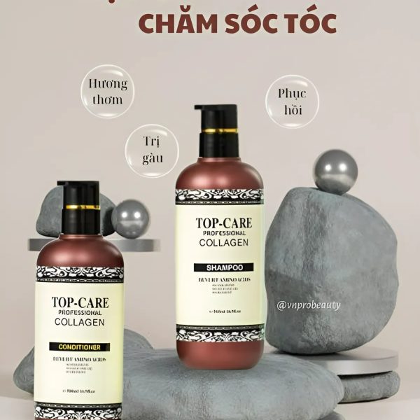 - Dầu gội Top-Care: Tinh chất tẩy rửa dịu nhẹ an toàn cho mọi loại tóc, phục hồi hư tổn chuyên sâu, cùng với độ mềm mại tự nhiên. Công thức độc quyền bổ sung Collagen siêu nhỏ mang lại cho mái tóc vẻ mềm mượt tự nhiên, tạo độ sáng bóng cho tóc, mà không làm yếu tóc và bảo vệ sự tự nhiên. Bảo vệ và nuôi dưỡng, giữ màu cho mái tóc.